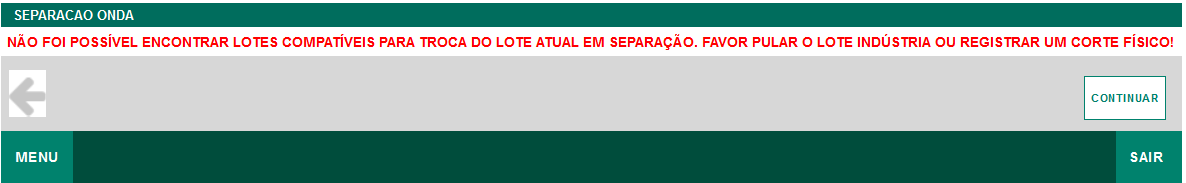 Funcionalidad agregada a partir de la versión 8.11.15.0. Ajustamos el sistema de modo que durante la separación de ondas, el lote de un producto solicitado por la industria sino se encontró, provocó una perturbación operativa, que en la mayoría de los casos sería la solución para cancelar la ola para las correcciones de stock necesarias. De esta forma, creamos un comportamiento durante la Separación de Ondas, vía Data Collector, permitiendo el intercambio del lote industrial de una forma más sencilla.