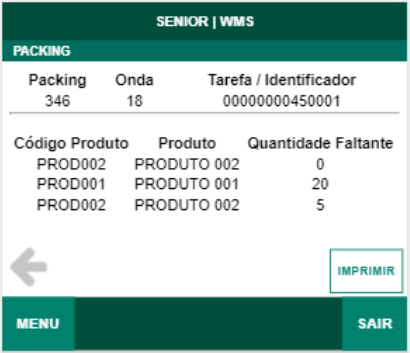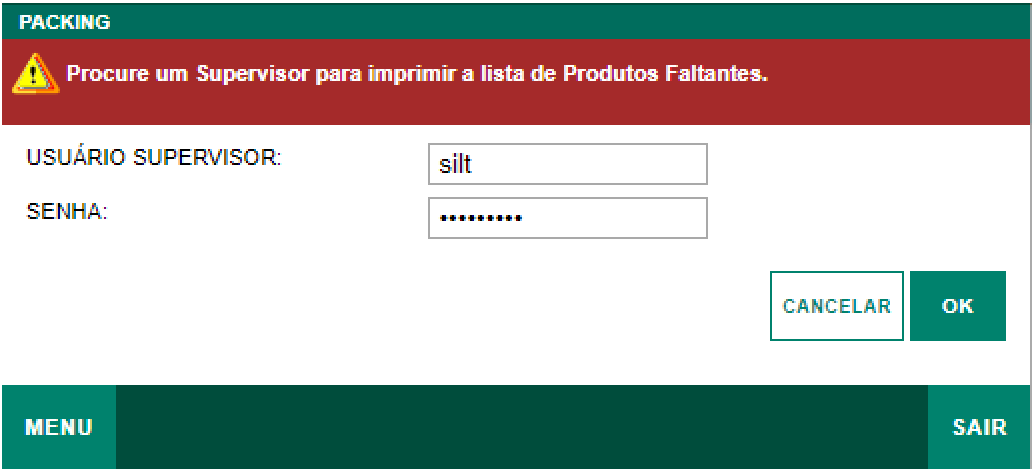Está representado por un informe que enumera los productos faltantes, que fueron separados para las actividades, pero queno fueron revisados y que aún no aparecen en la mesa de conferencias. Su finalidad es separar correctamente los productos queno se separaron físicamente dando lugar al embalaje, pero para que esto ocurra, el sistema solicita alcontraseña del supervisor para imprimir este informe.