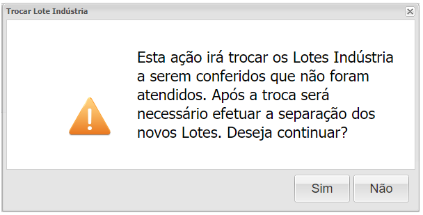 Haciendo clic en el botónCambiar lote de industria, aparece una solicitud de confirmación para cambiar el lote "marcado".