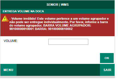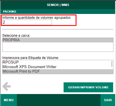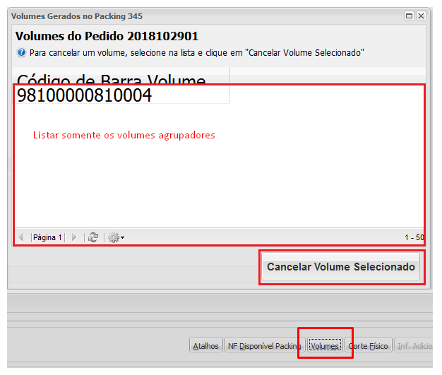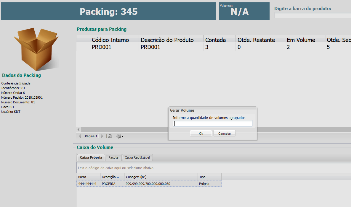 Simplemente deje el parámetro activado.Usar el volumen del clasificador para elFlujo de empaque y muestra el mensaje: "Al generar volumen en Packing, se solicita la cantidad de volúmenes para el volumen de envoltura".