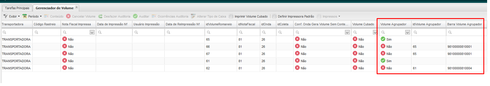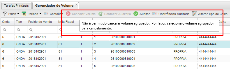 Nota: El sistema no le permite cancelar el volumen agrupado.