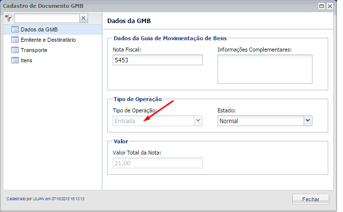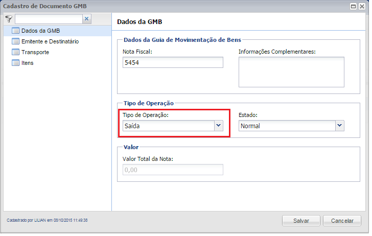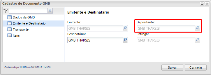 Después de informar al depositante, complete los datos del Transportista e inserte los artículos en elGBM.