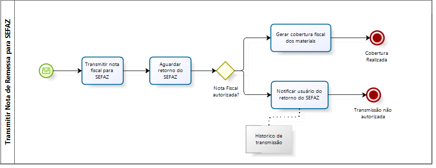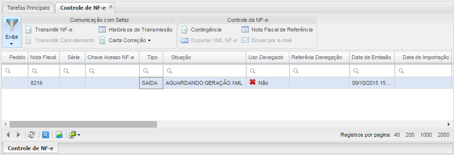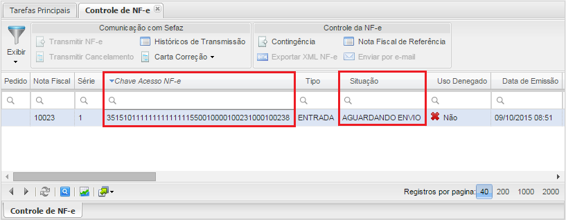 - Después de completar este paso, se crea una nota de remesa de almacenamiento, que está disponible en la pantalla de control NF-e para transmitir a laSE HACE con el estado "Esperando generaciónXML“.