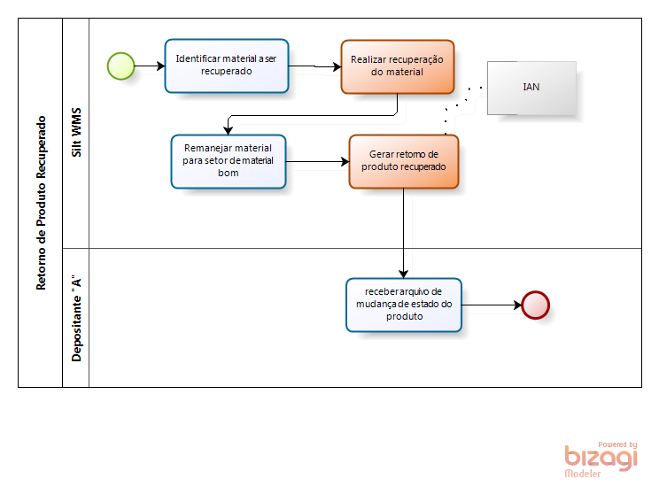 Ajuste de Inventario Inventario General, Se realiza Planificación de Inventario, iniciando el recuento de inventario. Existe la gestión de inventarios, comprobando las discrepancias físicas versus el recuento realizado. Después de verificar todas las diferencias, es posible finalizar el conteo y el sistema genera un archivoIAN en el directorio de exportación para la evaluación de laERP para conocer las divergencias de existencias, mientras que en elWMS necesidad de esperar la aprobación del ERP (proceso manual, es decir, alguien responsable del WMS ponte en contacto con el ERP para solicitar autorización / aprobación para continuar con el proceso de actualización de inventario), luego de la confirmación finaliza el inventario, ajustando los materiales en el inventario. WMS, completando así el inventario.