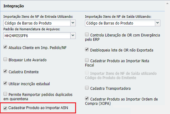 Pero valida el parámetroRegistrar producto al importar ASN desde el menú: Registro> Depositante> Submenú: Integración, al importar el inboundASN, el WMS registra los productos que no existen en el sistema.