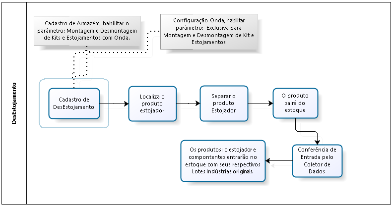El proceso consiste en desmontaje solo de producto almacenado, que devuelve los SKU originales al inventario de los productos que era la funda y los componentes.