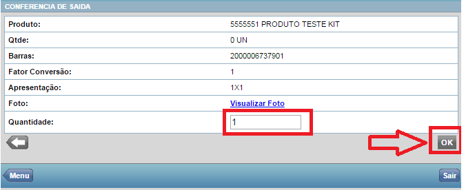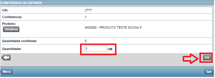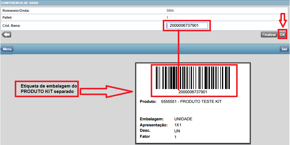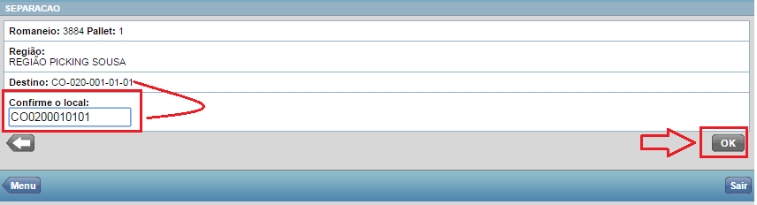 en la pantalla deCONFERENCIA ENSALIDA, ingrese el número de separación para iniciar el proceso de verificación delPRODUCTOEQUIPO estar separados.