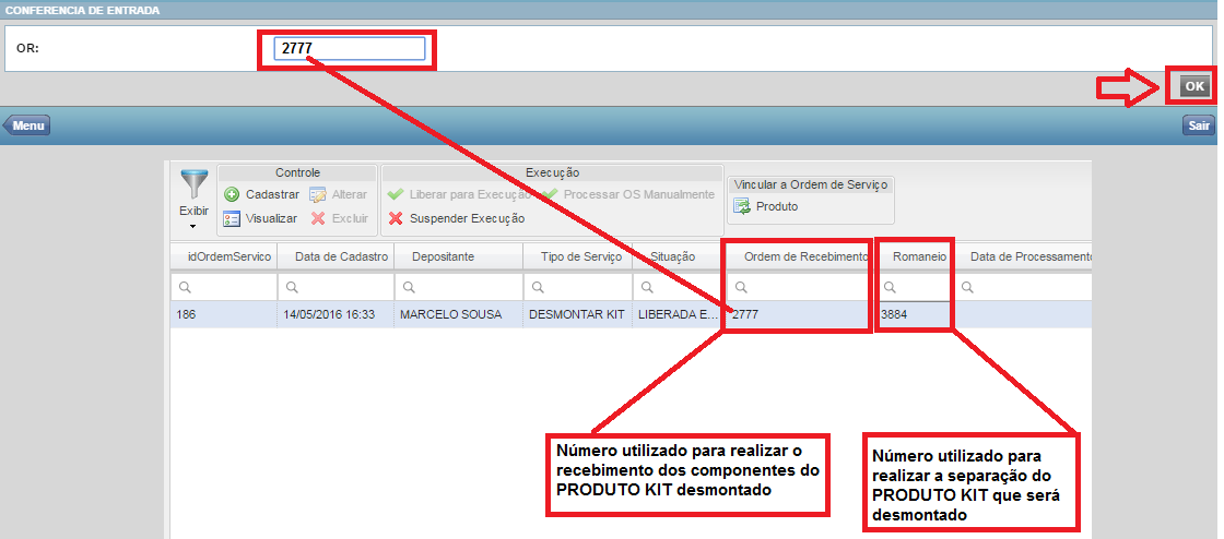 - Una vez completada la Separación y Salida del Listado, se crea el número OR, que realiza la recepción delcomponentes delPRODUCTOEQUIPO en el almacén.