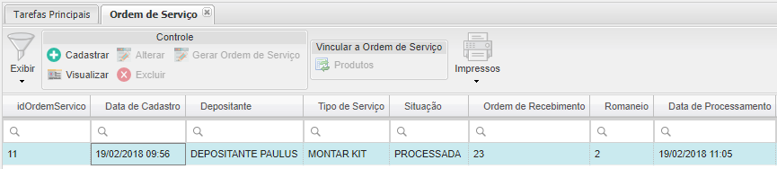 Seleccione el registro KIT y haga clic en el botón Generar orden de servicio, después de eso se crea la actividad de producción del Kit.