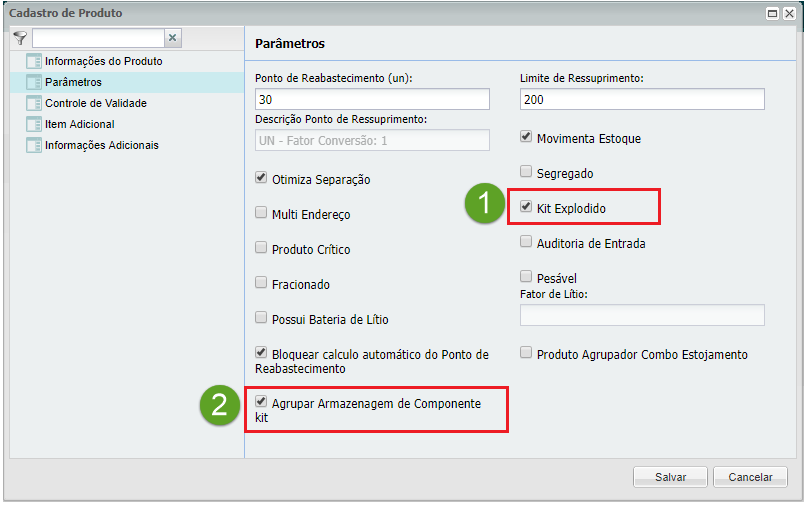 Tenemos la posibilidad de configurar el kit de envío explosionado para que solo sea posible ingresar al stock de kits de envío explosionados con la composición completa. Cuando se configura tal situación, el WMS asegura queno Hay productos componentes que son comunes entre dos kits de envío explosionados, es decir, un producto es solo parte de un componente y / o la receta de un solo kit de envío explosionado. Esta limitación es para asegurar que en los quirófanos o inventarios, el WMS pueda saber si se está recibiendo un kit completo, teniendo una asociación precisa entre el componente y su kit.