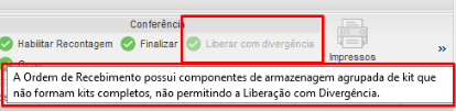 El sistema se ha configurado parano permitir la liberación de la factura para el envío si el parámetroAlmacenamiento grupal de componentes del kit está marcado y no formar kits completos.