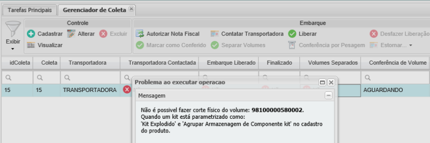 Bloqueamos el Corte Físico de volúmenes cuando hay un componente de kit, con la presentación del mensaje:No es posible cortar físicamente el volumen: 9810000000580002. Cuando un kit está parametrizado como: "Kit explosionado" y "Kit de almacenamiento de componentes de grupo" en el registro del producto.