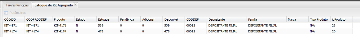 Creamos este informe que muestra la cantidad de kits de envío explosionados en stock, es decir, cuando el depositante se ha parametrizado correctamente para que un componente solo participe en una receta de kit de envío explosionado.