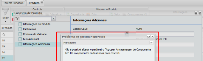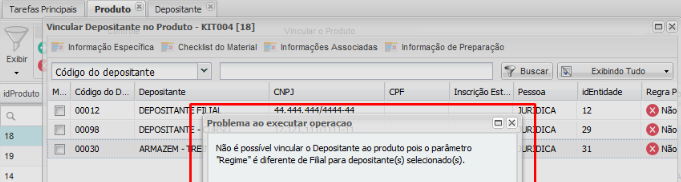 - No es posible vincular el Depositante con el producto porque el parámetro "Kit de Control Fiscal sólo en componentes" está marcado para los depositantes seleccionados..
