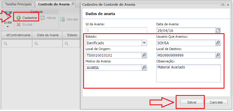 haga clic en el botónREGISTRAR, informe los campos resaltados y haga clic en el botónAHORRAR.