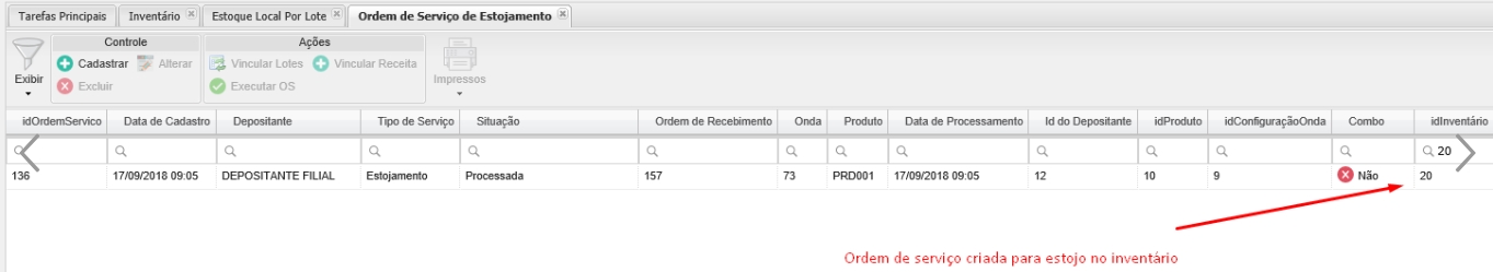 - Menú: Servicios> Orden de servicio de almacenamiento