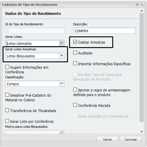 - Establecer el tipo de recibo en PermitirGenerar lotes de muestra Obstruido.