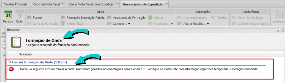 En Wave Formation, los lotes de productos que controlan la información específica queno Se ha intercambiado la información temporal para la final.