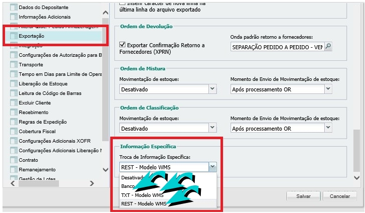 En cada cambio deInformación específica temporal pordefinitivo, el WMS llena la tabla INT_ENVIO_ALT_INFESPEC, que es leída por el ERP, siempre que en el Registro Depositante> Submenú: Exportar> parámetro: Intercambio de Información Específica, esté configurado en Banco, TXT - Modelo WMS o Resto - Modelo WMS.