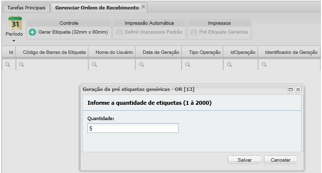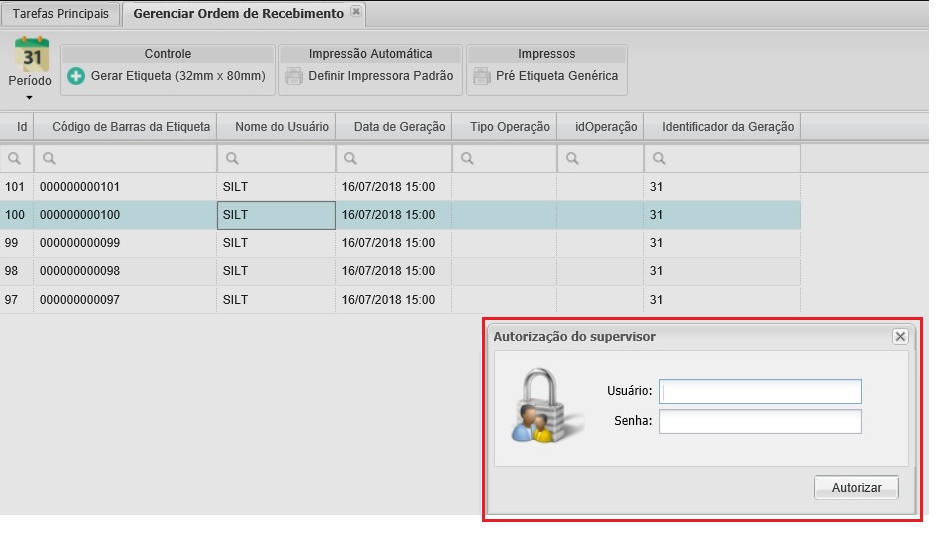 - La impresión de etiquetas se realiza a través de la pantalla Administrar pedido de recibo> botón Imprimir y la reimpresión se realiza con la solicitud de usuario y contraseña.