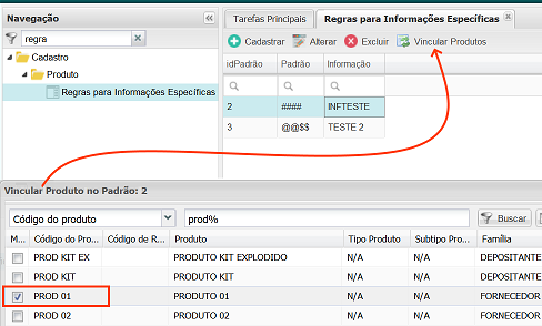 Crear la asociación de productos a una regla de información específica.