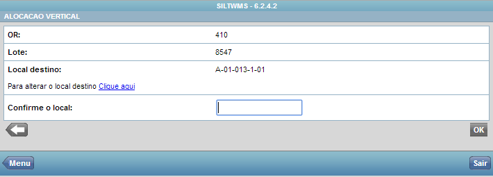 Si hace clic en el botón “Para cambiar la ubicación de destino. Haga clic aquí". El sistema abre un campo para ingresar una nueva ubicación de almacenamiento. Donde se valida la ubicación x producto x depositante x cubicación.