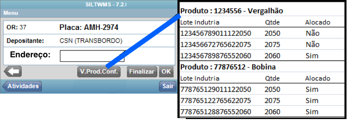 Nota: Si la dirección de asignación informada es del tipo picking, la dirección no debe registrarse como Product Picking. - Inserción en el contenido del botónVer productos de la conferencia