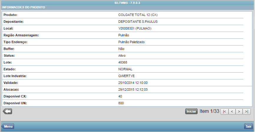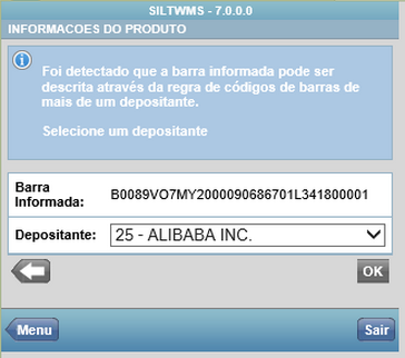 Esta funcionalidad es responsable de ver la información del producto diversa del código de barras en el empaque del producto, pero a partir de 7.0.0.0 se realizó un cambio en la entrada de la barra del producto de modo que si no se encuentra un empaque, una regla de barra para el depositante que cumple con la barra informada. Si hay más de una regla definida que cumple con la barra informada, se presenta una lista con los depositantes que tienen la regla que puede cumplir con la barra informada.