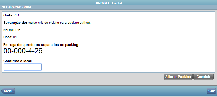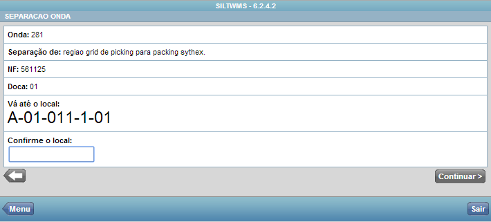 - Al iniciar el almacenamiento de productos, el sistema guía la entrega, seleccionando el primer lugar a entregar. Después de confirmar el lugar de entrega, el sistema elige el primer producto y solicita confirmación. Después de confirmar el producto, se puede confirmar la cantidad mediante el parámetroConfirmar la cantidad de separación presente en la configuración de onda. Si se activa, se confirma la cantidad. En este paso, no se acepta ninguna cantidad que no sea la cantidad separada. Este proceso se repite hasta que no haya más productos ni lugares de entrega.