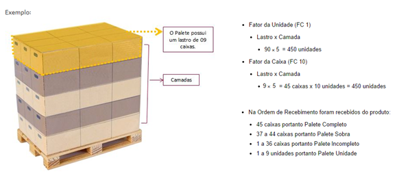 - Volúmenes sueltos: si los productos no vienen paletizados, el operador deberá descargarlos armando los pallets de acuerdo con las normas de paletización respectivas. La identificación del estándar de paletización puede ser realizada por el recolector de datos, siguiendo un ejemplo del estándar de paletización del producto.
