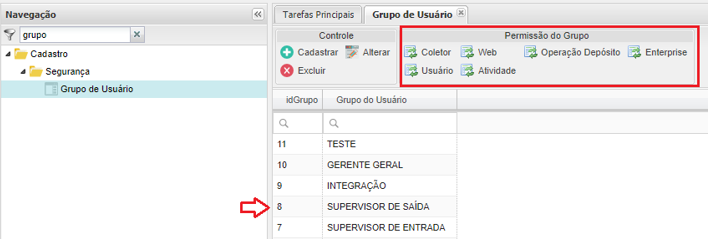 - Vaya a Registro > Seguridad > Grupo de usuarios > botónRegistrar;
