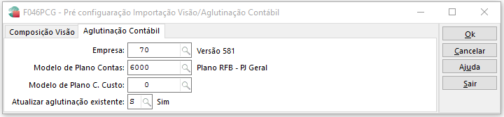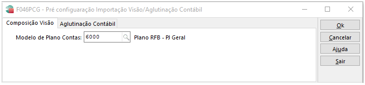 A importação das visões padrões Senior são realizadas através da tela Cadastro de Visões Contábeis (F046VIS).