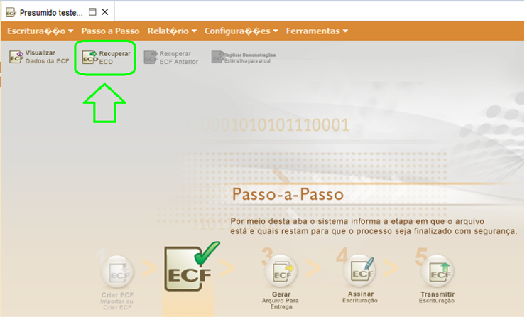 Primeiramente, deve-se importar o arquivo da ECF, para posteriormente recuperar o arquivo da ECD.