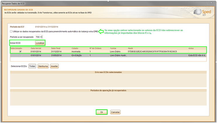 Se isso não ocorrer, a ECF recuperará somente os dados do segundo arquivo e os ajustes necessários deverão ser realizados manualmente pelo usuário no próprio PVA da ECF ou na ECD, por meio de substituição.