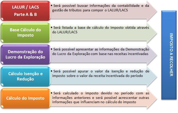 A parametrização do sistema para realização da apuração dos tributos e geração do SPED ECF poderá ser realizada pelo cliente ou por um consultor capacitado.