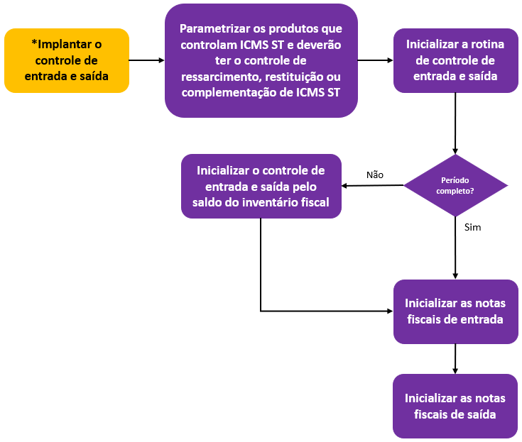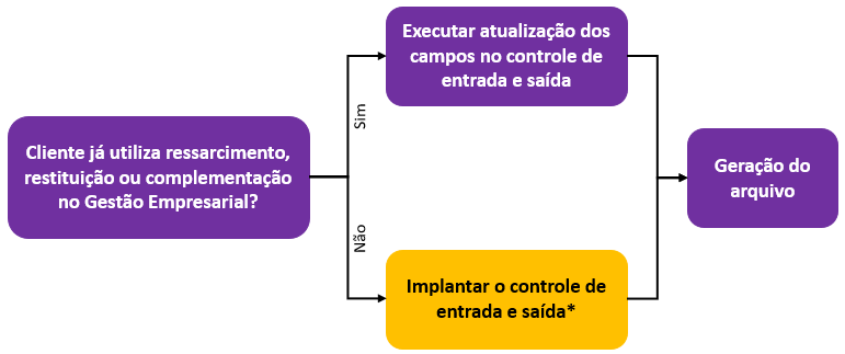 Caso no fluxo acima, a etapa escolhida foi Cliente NÃO utiliza ressarcimento, restituição ou complementação no Gestão Empresarial, a partir de 2020 e conforme cada UF publicar suas definições, deve ser seguido o fluxo abaixo: