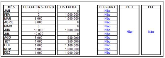 Ou seja a pessoa jurídica é dispensada da apresentação da EFD-Contribuições quando não auferir receitas e/ou operações geradoras de crédito, devendo somente declarar na competência Dez/20XX os meses em que não auferiu receitas e não realizou operações de crédito no registro 0120 - Identificação de EFD-Contribuições sem dados a escriturar.