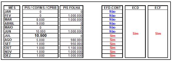 As pessoas jurídicas imunes ou isentas do IRPJ ficarão obrigadas à apresentação da EFD-Contribuições a partir do mês em que o limite de R$ 10.000,00 for ultrapassado, permanecendo sujeitas a essa obrigação em relação ao restante dos meses do ano-calendário em curso.