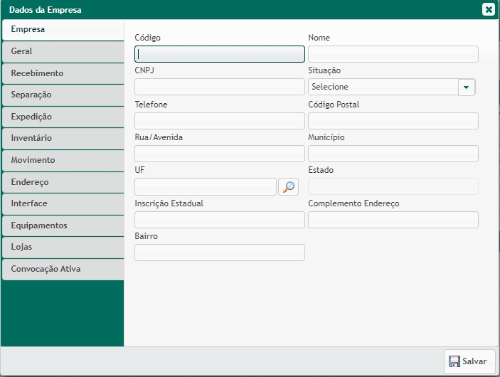 Aplicação permite realizar o cadastro de todas as Empresas/Filiais que farão parte do WMS; sendo possível configurar cada uma de acordo com suas particularidades.