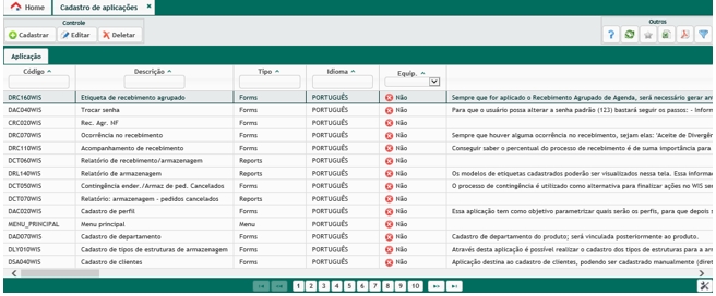 Essas aplicações já são cadastradas através de levantamentos de processos definidos, dessa forma, não é necessário que o usuário faça manutenção.
