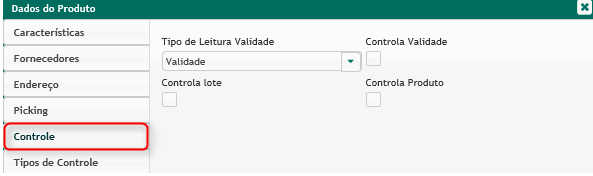 - Tipo e Leitura da Validade: caso o produto tenha controle de validade, o sistema poderá validar essa regra de duas maneiras: