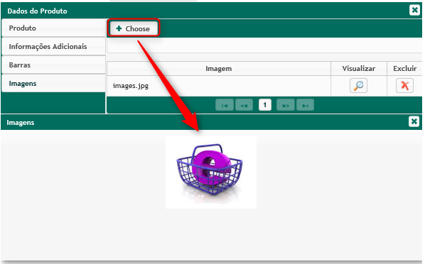 - Imagem: A imagem do produto pode ser visualizada ao salvar o arquivo .JPG em um local específico e, em seguida, carregá-lo através da opção Choose.