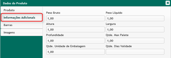 As informações adicionais estão relacionadas o preenchimento das dimensões físicas do produto, são estes:
