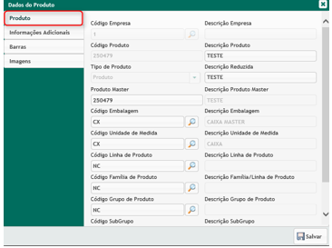 - Código e descrição da empresa: indica a filial responsável pelo cadastro do produto, garantindo melhor rastreabilidade dentro da empresa;