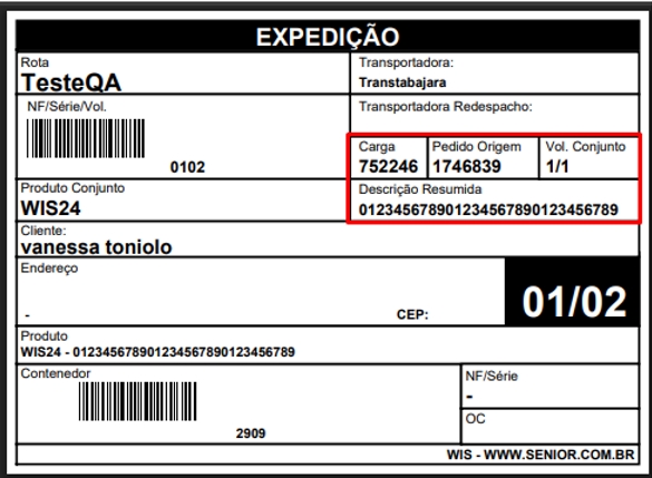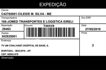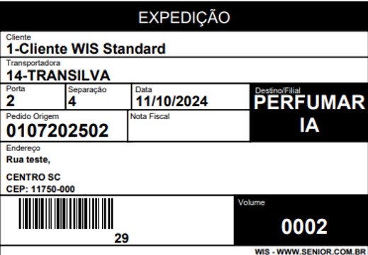 - Cabeçalho: Indicação de que a etiqueta pertence ao processo de expedição.