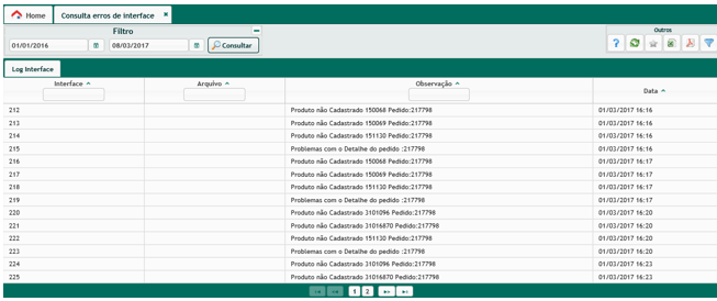 Através dessa tela é possível realizar consultas primarias para verificação de possíveis erros de interface, sejam elas de entrada ou saída.