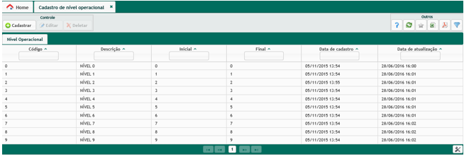 Cadastro de Nível Operacional