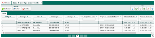- Código e Descrição: o código da Doca é chave primária, ou seja, não poderá ser repetido mais de uma vez;