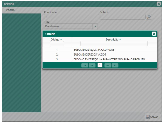 Através dessa aplicação é possível parametrizar as regras para os setores, atribuindo aos mesmos critérios por ordem de prioridades; essa ação tem impacto direto no momento que o WMS faz a busca para o endereçamento automático e armazenagem nas modalidades agrupadas e fracionadas, praticadas no recebimento agrupado, como também na armazenagem de corte de pedidos.