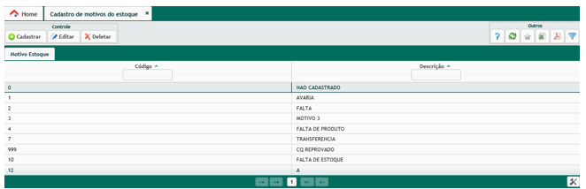Acesse: WMS | WIS > Administrativo > Movimentação > Cadastro de Motivo de Estoque